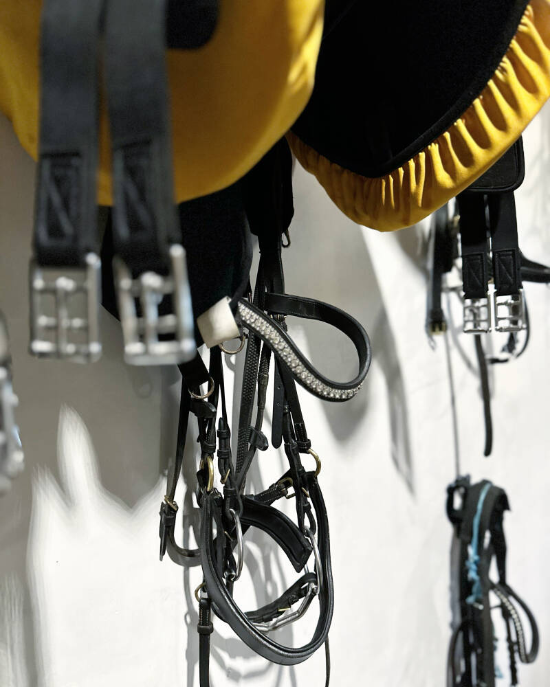 Hevosten hoito tapahtuu päätallissa josta varusteet löytyvät. Meillä on pieni lämmitetty varustetila ja hevosten hoitotarvikkeille löytyy hyllypaikka tallin puolelta sekä vesipiste.